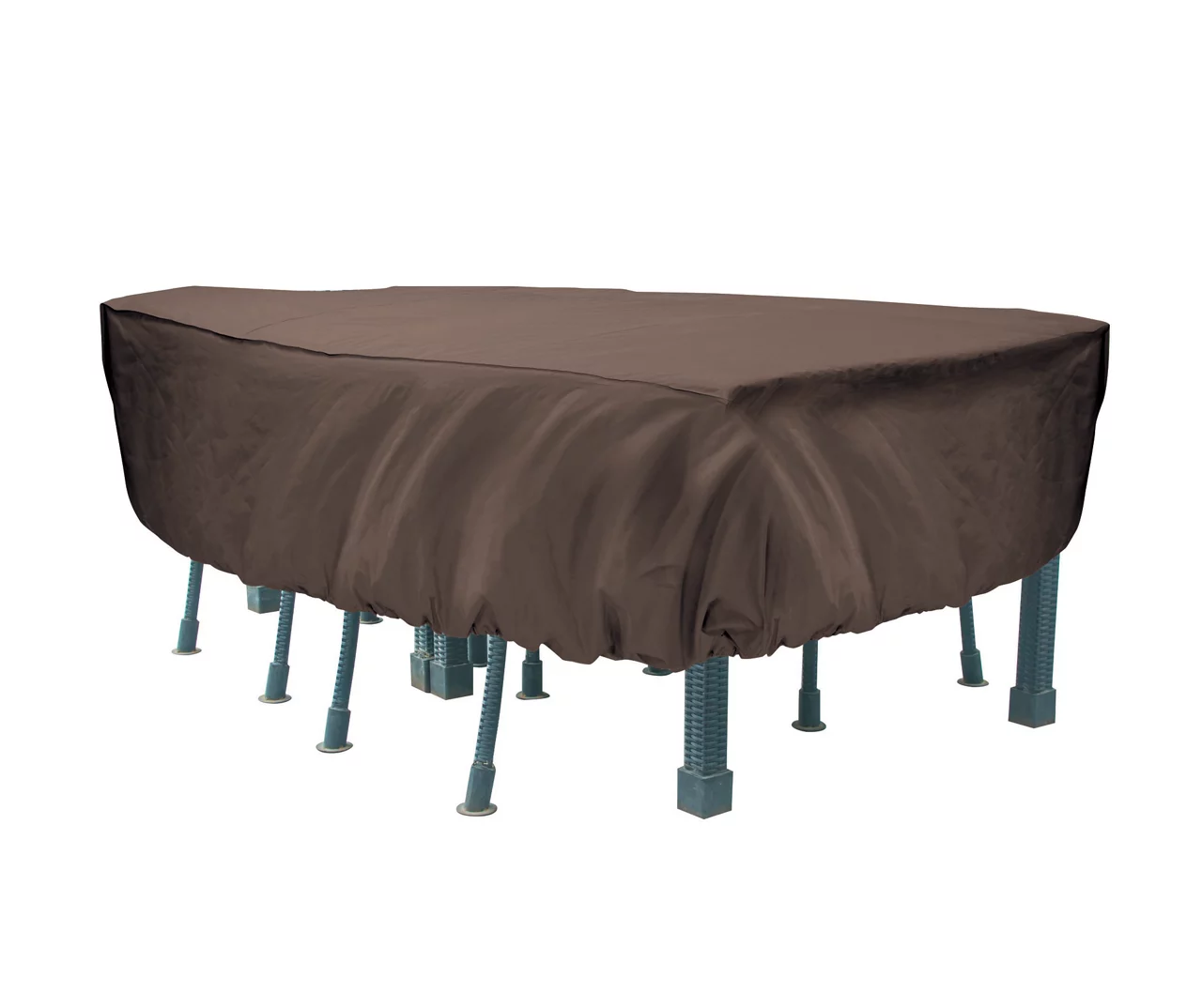 Keep your patio set covered and safe from outdoor weather conditions such as dirt, dust, pollen, sap, snow and rain all year long using this convenient cover. The rectangle design in a stylish mocha color looks great with your décor as heavy-duty, long lasting woven polyester protects your furniture. Water-resistant and UV protected to help prevent fading, discoloration and resist extreme temperatures, the cover is complete with a zipper that makes it easy to secure and remove.