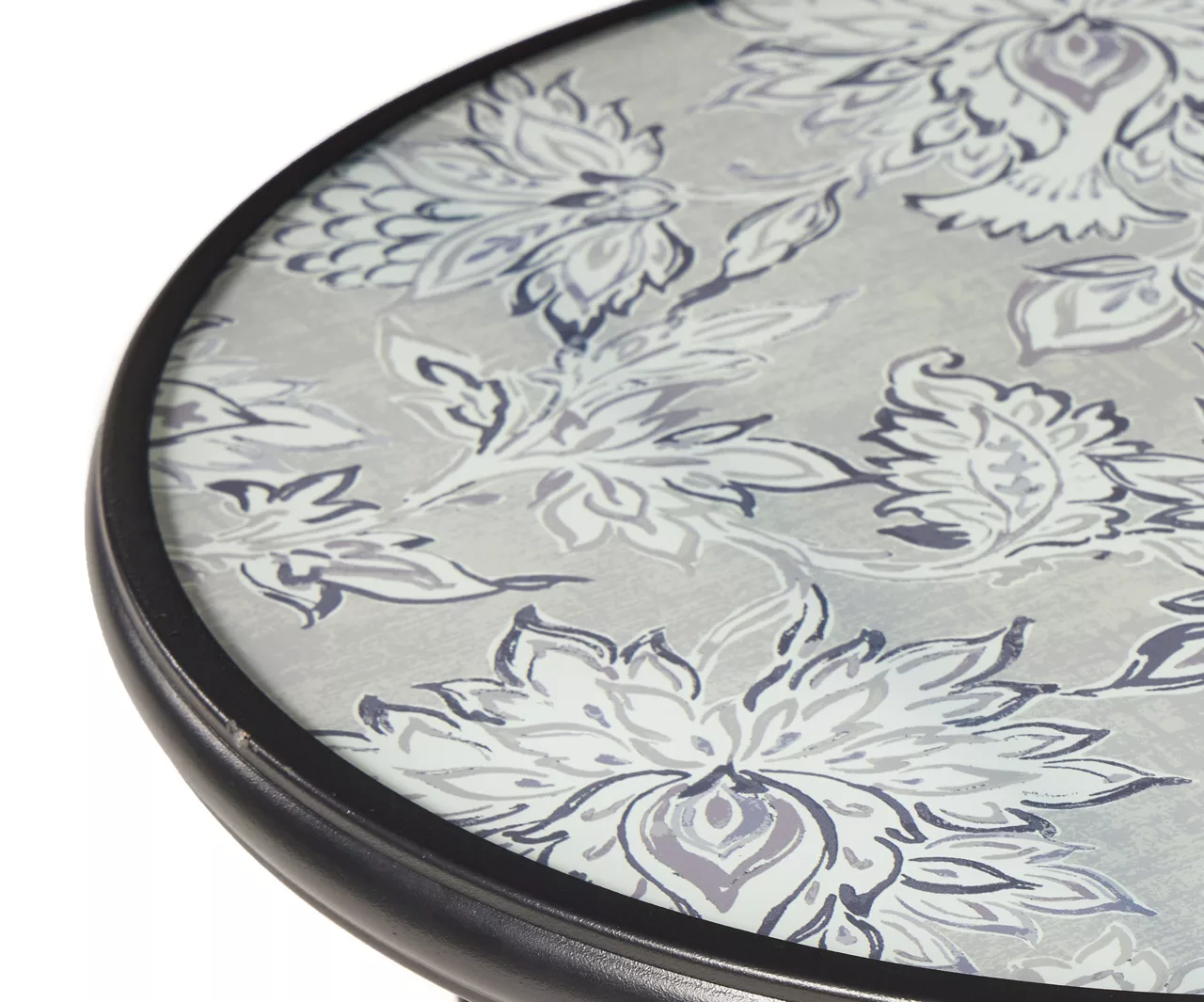 Dine in your favorite outdoor spots with the style and function of this folding table from Real Living! Made with a tempered glass tabletop featuring a neutral floral print, the black powder coated steel frame folds so that storage and set up stays simple. This table is perfect for use on the deck, porch, backyard and more!