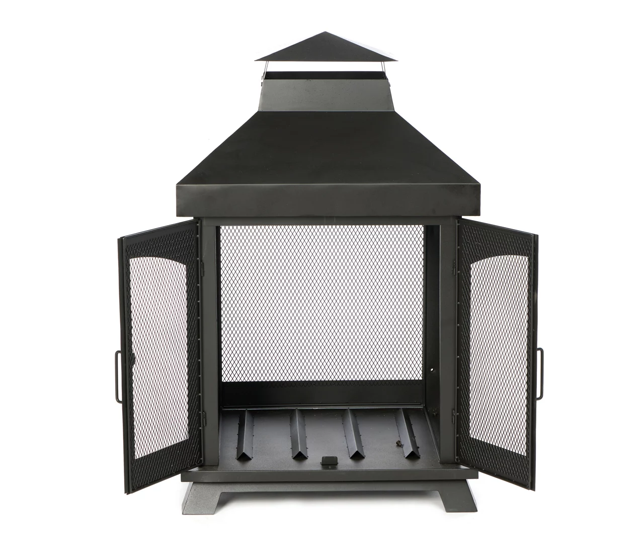 - Spark guards on sides and doors for warmth and visibility from all angles