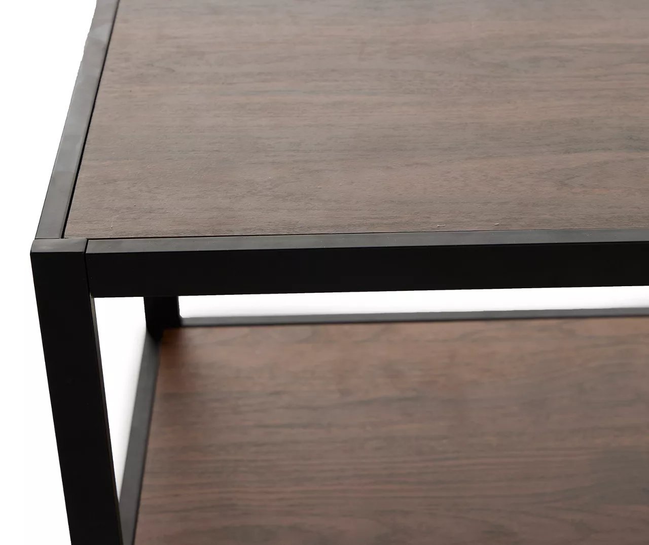 - Real wood look in a medium mango brown finish on all surfaces