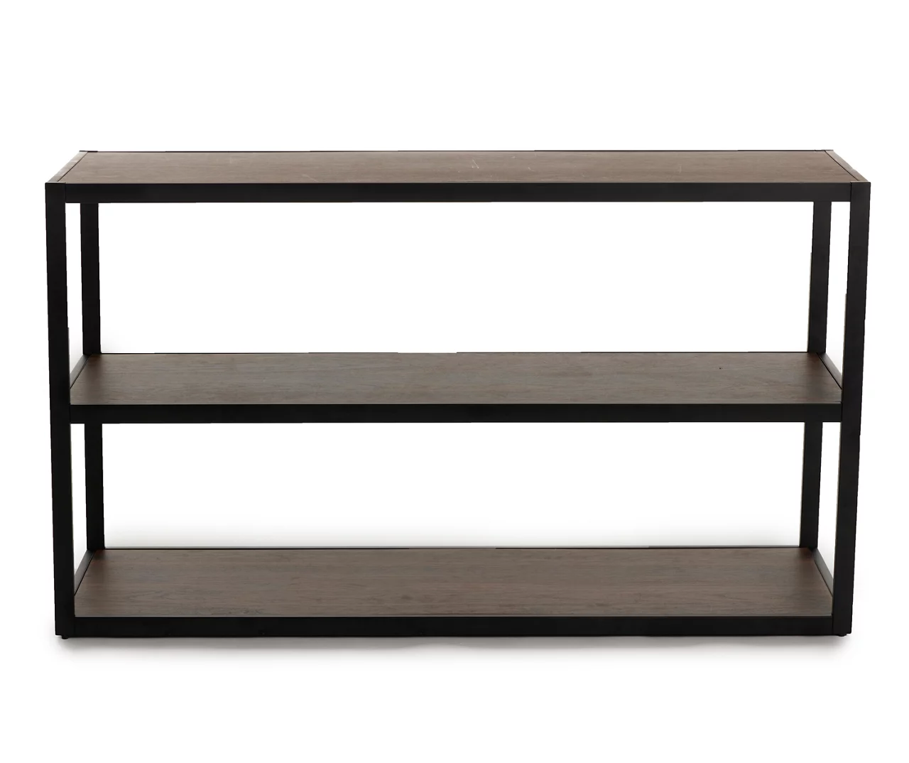 Add modern style to your flatscreen TV or home audio setup with this media console table. Built around a solid metal frame for stability and durability, the table includes three handy wooden shelves for storing cable boxes, gaming accessories, media collections, and more. Best of all, it features a real wood look, ample storage, and timeless mid-century modern style.
