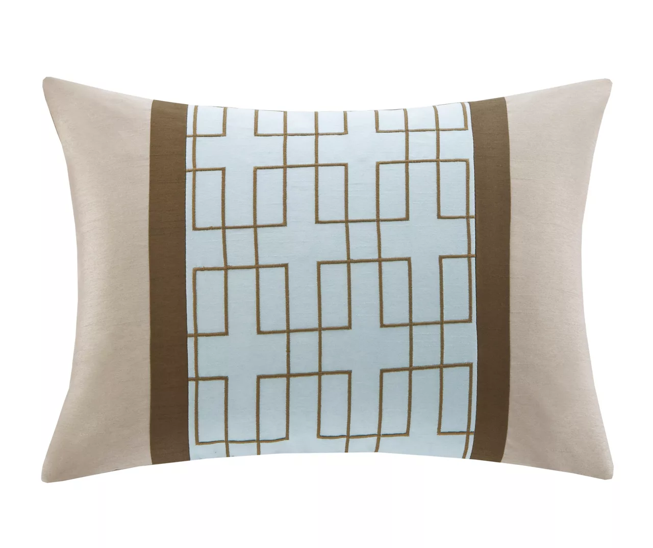 The Beverly bedding collection creates a neutral feel to your space with a nice light blue to add some color. This set is made from polyester polyoni creating a sheen to the brown, taupe and blue colorways in this bed. The taupe color creates a large border around the edge of the comforter and a brown border is used inside to give the blue a pop in the center. The decorative pillows make use of these same borders and colors for a completely matching set while the chocolate brown bed skirt adds some drama with its dark coloring. With these neutral colorways and large borders, this set will be easy to accessorize in any room in your home.