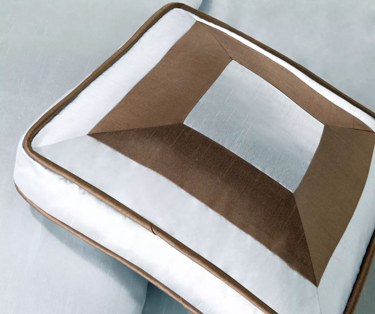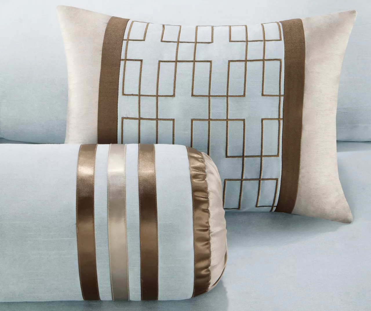 - Intricate ribbon and textured detailing on the decorative pillows to complement the bedding