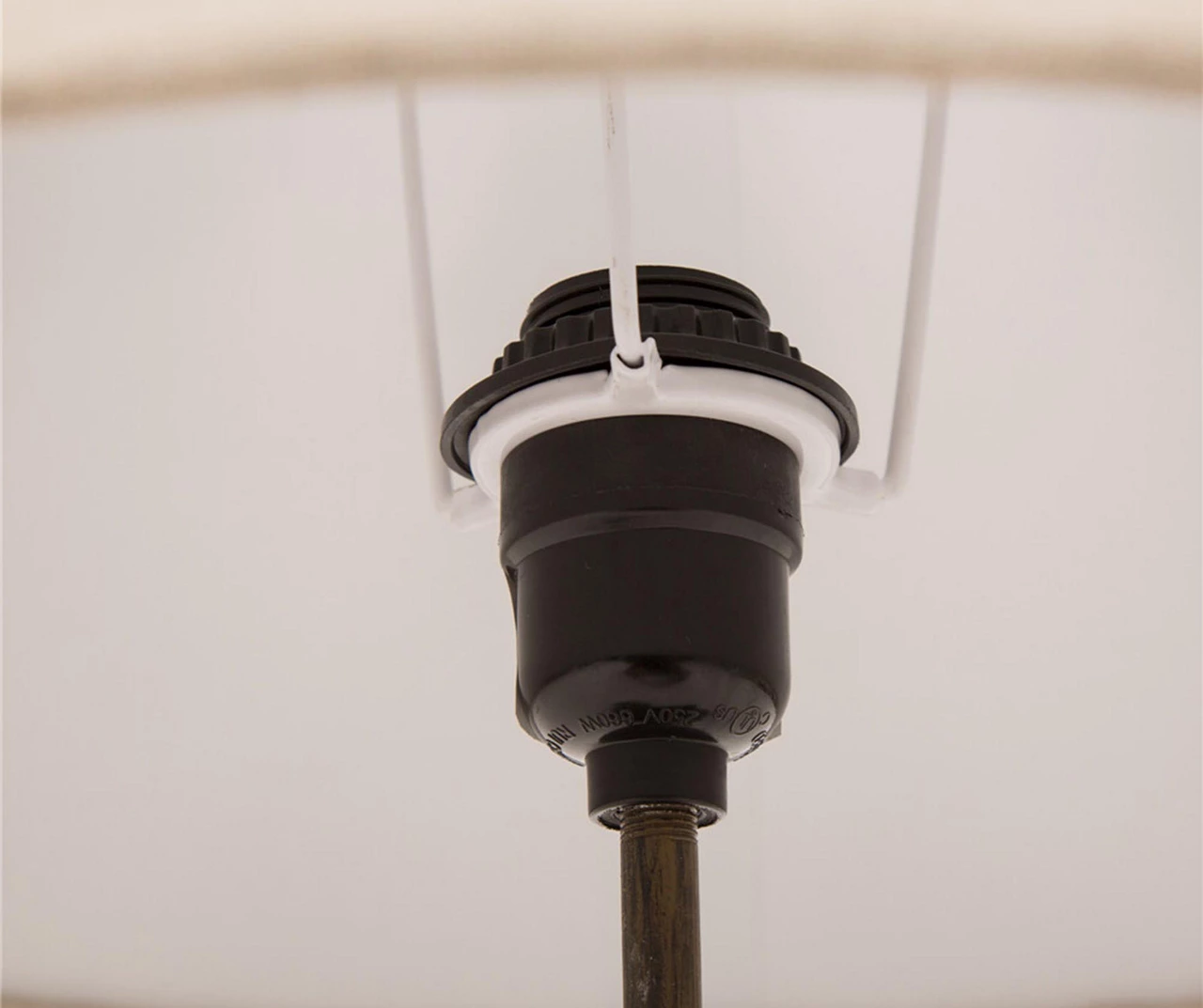 With a vintage tractor design, distressed finish and soft beige fabric shade, this statement-making lamp brings farm-fresh charm and warm illumination to your interior spaces.