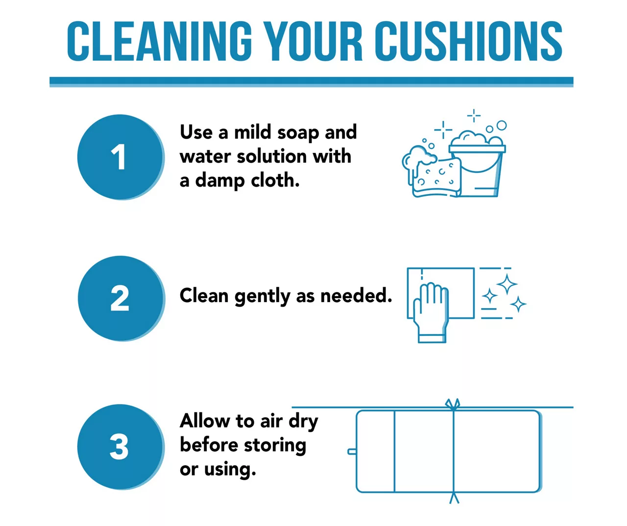 - Spot clean with water and mild soap