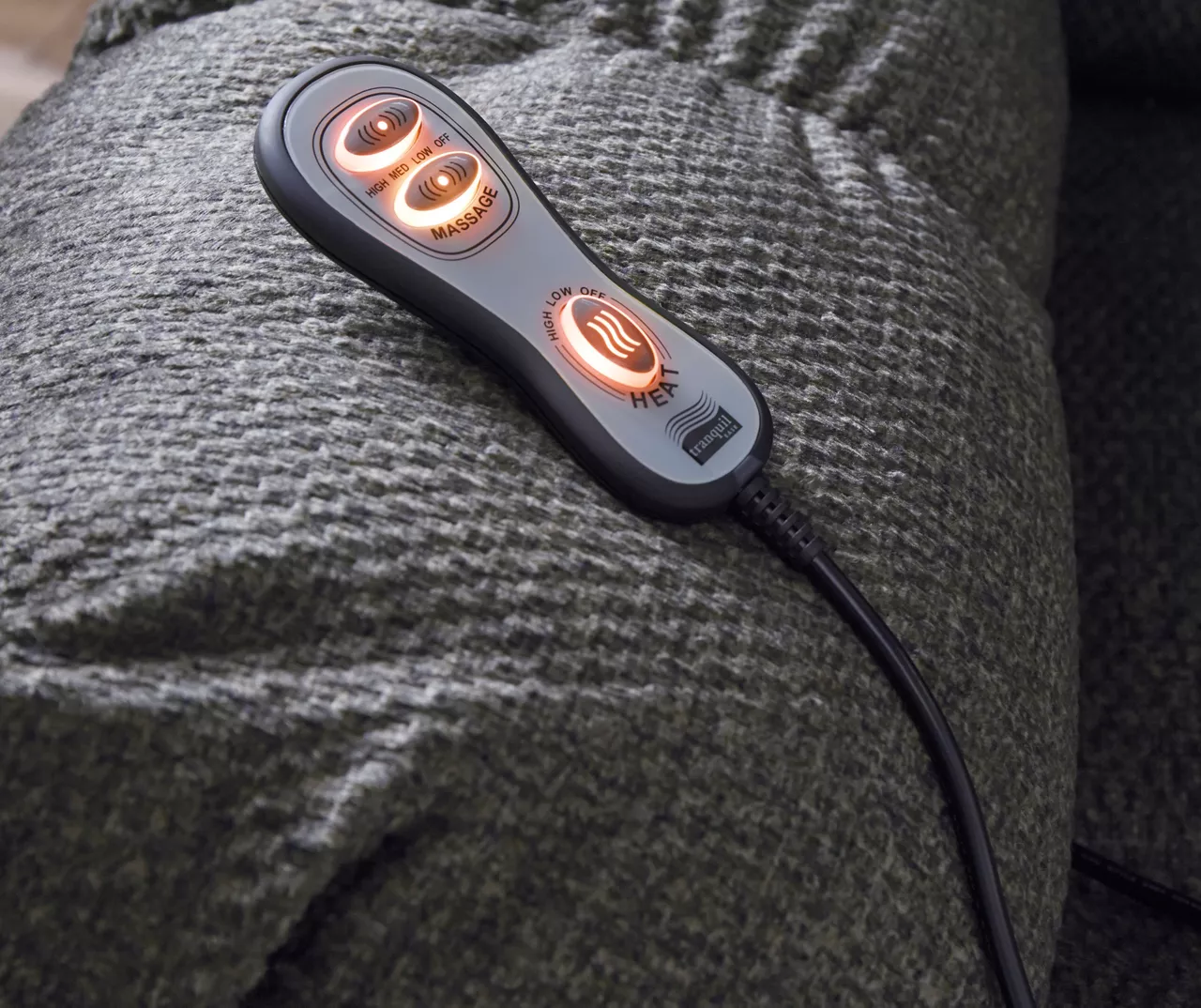 Intensify comfort in style with this rocker recliner from Ashley. Simply pull the chair lever to recline and, with the hand-held remote, heat the seat and enjoy a soothing lumbar massage. Enjoy the super plush feel of the tufted upholstery and pillow top armrests for a great way to unwind and relax in your living or family room.