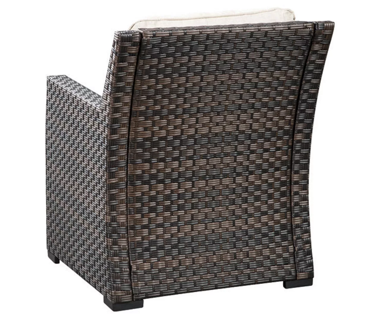 Alfresco living is easy to love with this cushioned lounge chair. Resin wicker over a rust-free aluminum frame lends an upscale aesthetic that’s downright durable. Wrapped in high-performing Nuvella fabric, the plush, neutral-tone cushions are comfortable and carefree. Clean lines and slim track arms surely appeal to those with contemporary taste.