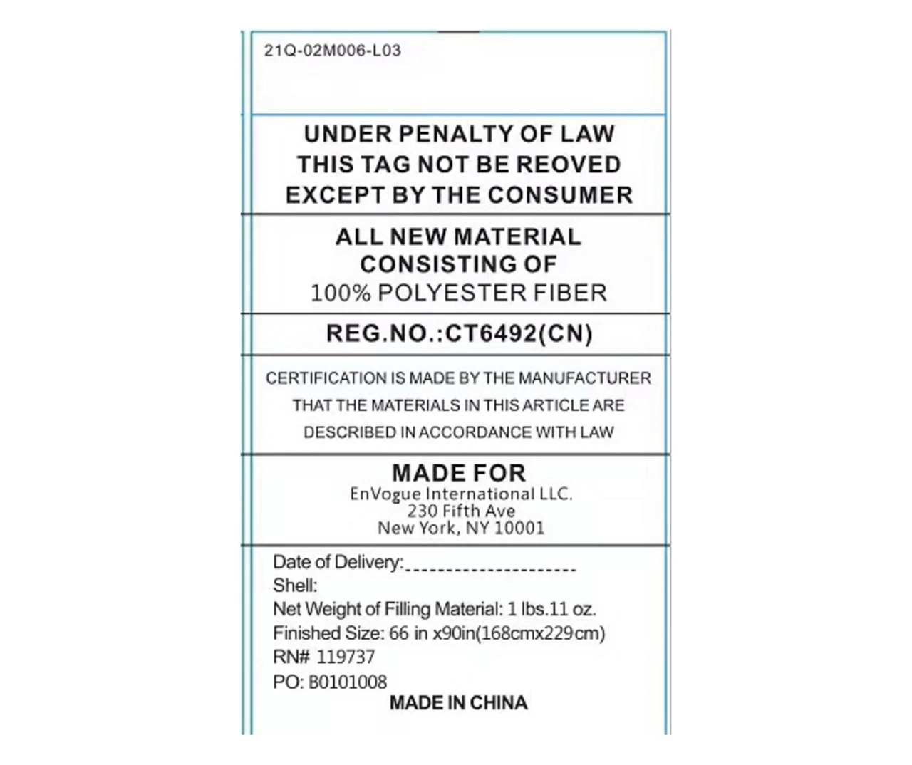 - Comforter: 66″ W x 90″ L