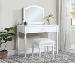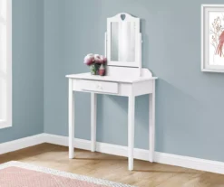 Merci 2-Piece White & Walnut 2-Drawer Lifting Mirror Vanity Set