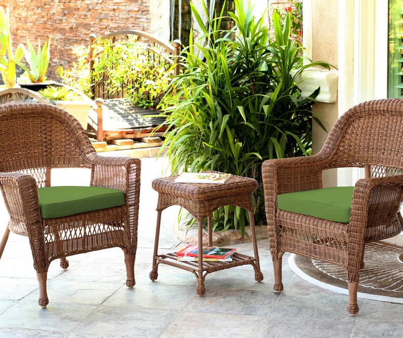 - Includes 2 – chairs with seat cushions and a side table