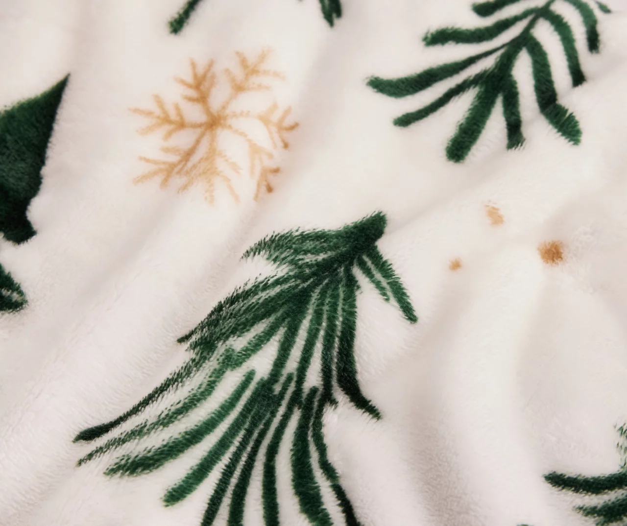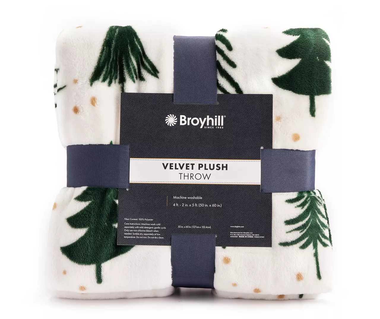 With so-soft velvety fabric and a seasonal tree pattern in shades of green and ivory, this throw from Broyhill delivers toasty warmth through chilly days and nights. It’s a cozy way to add a little extra festive flair to a bedroom, living room or home office.