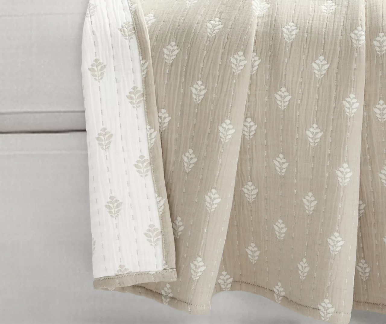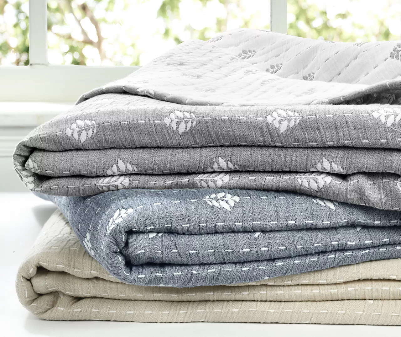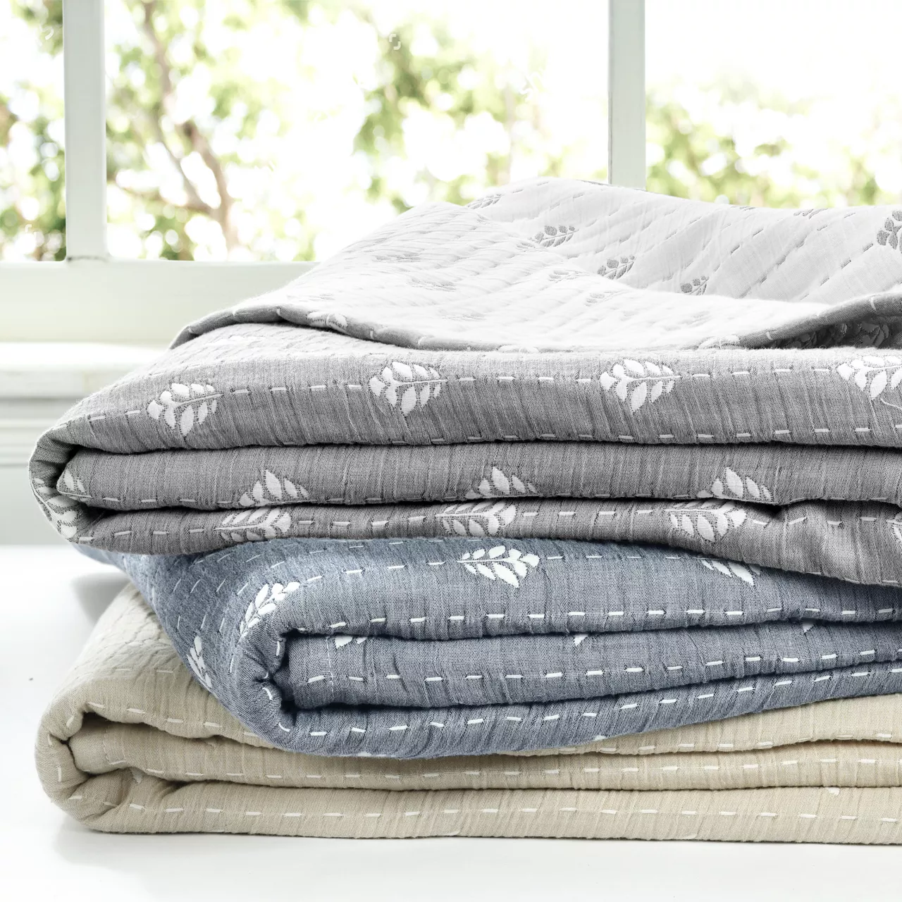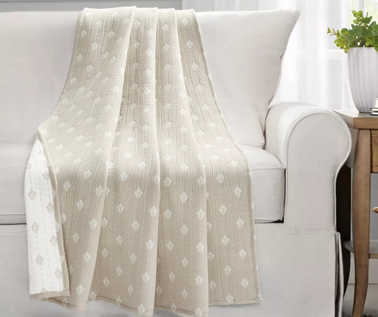Beautify your living space with the botanical elegance of this jacquard throw decorated with neat stripes of leaves on crinkled fabric for a modern look. Breathable cotton construction ensures you stay warm and comfy while curled up underneath.