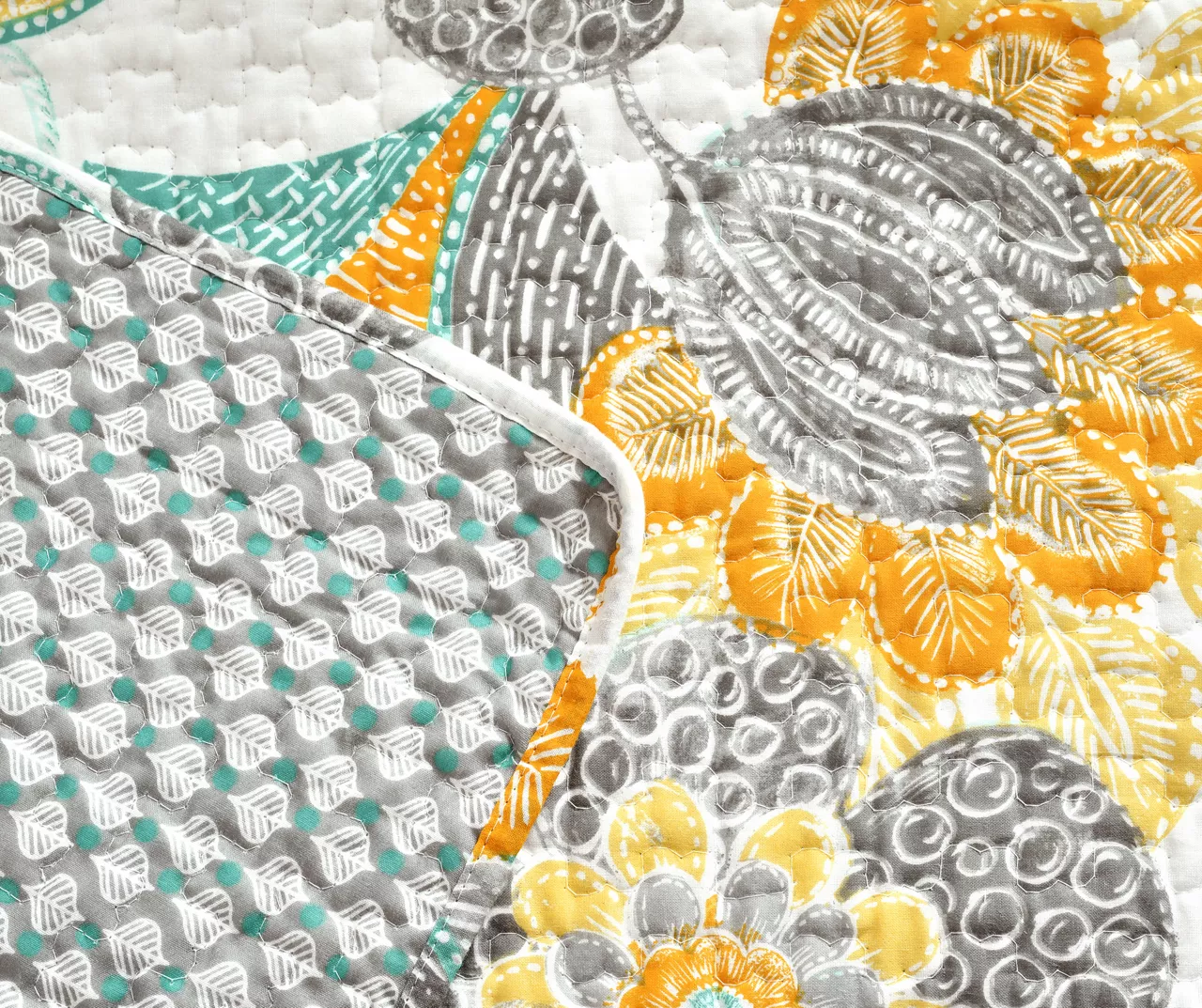 Get cozy on cool days and chilly evenings with the quilted warmth of this cotton throw that adds colorful boho elegance to your space through a patterned floral print on the front and dotted leaf pattern on the reverse side.