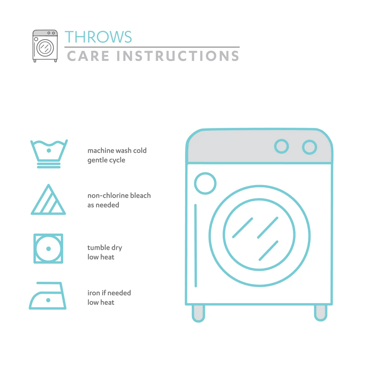 - Machine wash cold on gentle cycle. Use only non-chlorine bleach when needed