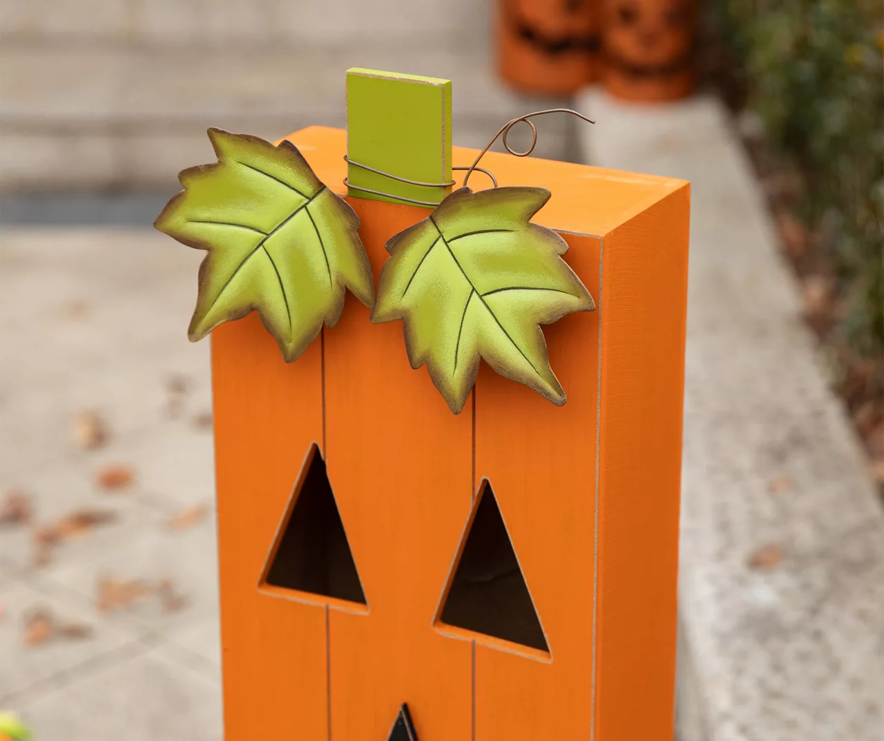 - Pumpkin box accent with cut-out Jack O’Lantern face