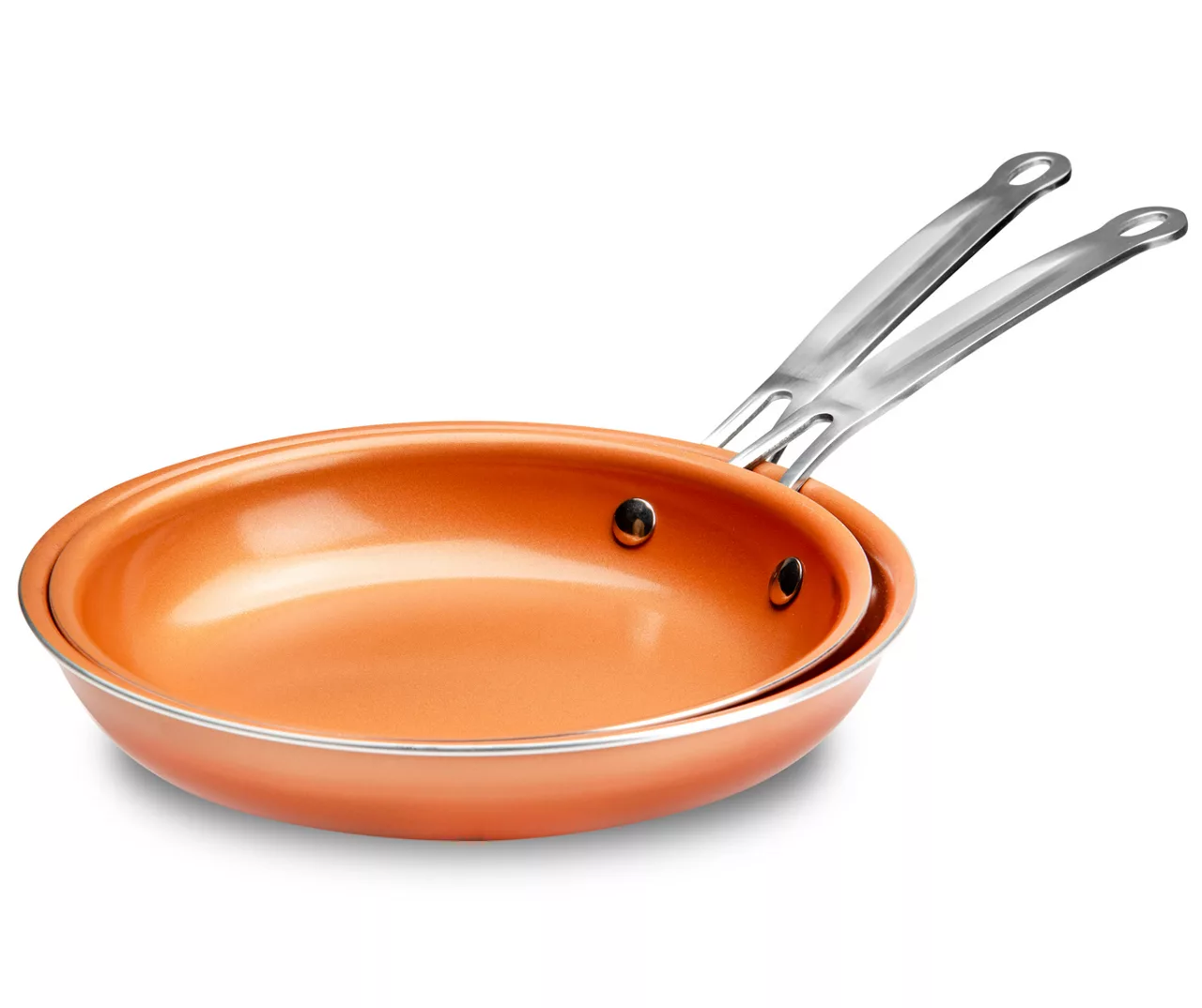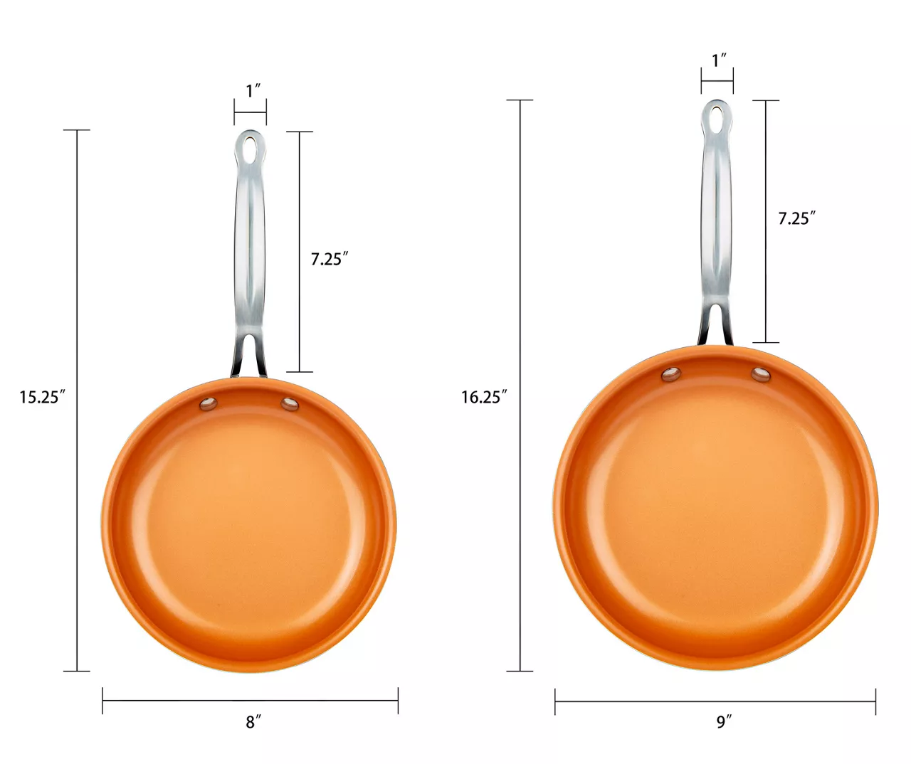 The Masterpan pressed aluminum fry pan set with copper color ceramic non-stick coating is easy-to-clean while providing a superior double layer ceramic non-stick coating that is safe and durable for daily use.