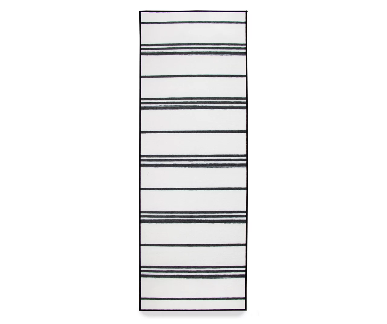 Lines of varying thicknesses stripe across this flatwoven rug that’s perfect for rooms with a contemporary aesthetic. This simple striped design comes on a slip, stain and waterproof rug that’s tough enough to handle any high-traffic areas in your home, office or RV. Protect your floors from spills and scratches and wash away germs with a full line of no-fuss rugs. My Magic Carpet is an eco-friendly alternative to traditional rugs. This rug is made of non-allergenic, stain-resistant microfiber polyester, with a waterproof inner liner and a non-slip backing.