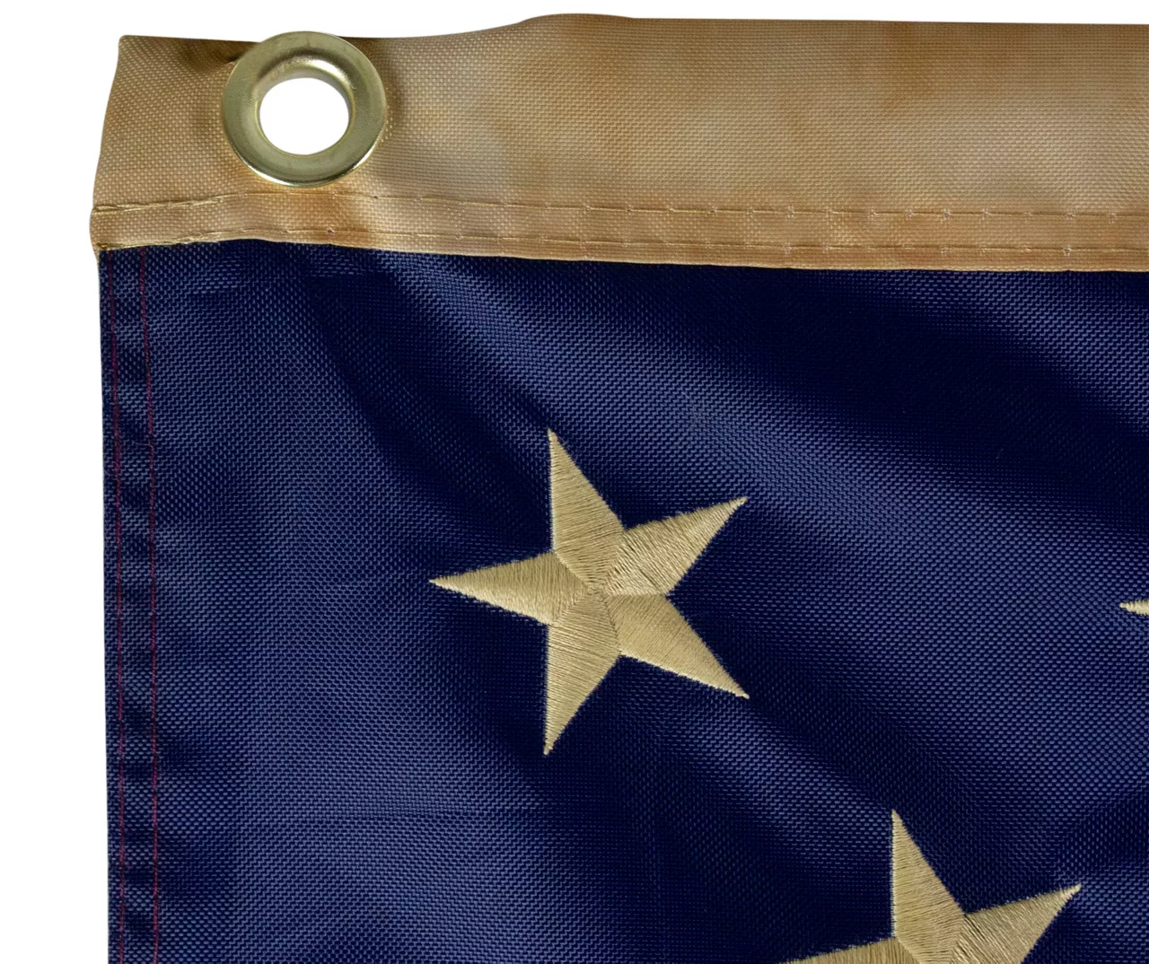 Celebrate your patriotism this summer with this vintage style tea-stained red white and blue U.S.A. flag. It comes with beautifully embroidered stars and double-stitched stripes with brass grommets for hanging. Perfect for displaying in your garden or inside your home for the Fourth of July or Memorial Day.