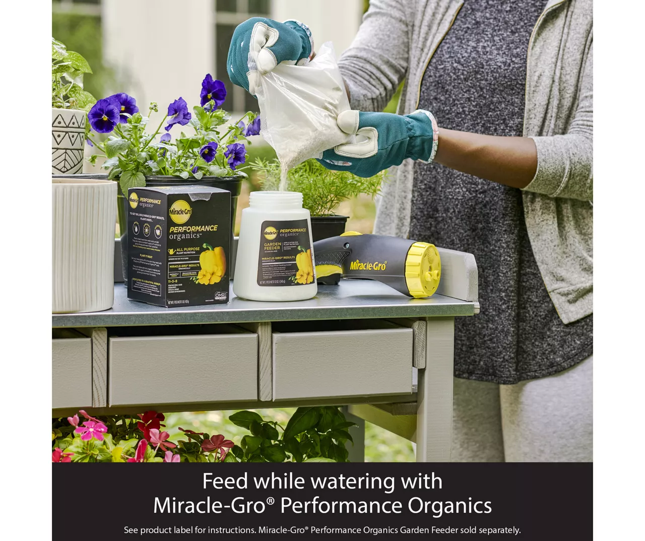 Approved for organic use, Miracle-Gro Performance Organics All Purpose Plant Nutrition feeds plants instantly. That’s because it’s enhanced with micronutrients which produce high performance results. Feeding your plants can help to bring your garden more bounty – vegetables, flowers and herbs – organically vs. unfed plants. The easy to use garden feeder can be attached to any garden hose, making feeding easy. As an added benefit, The Miracle-Gro Performance Organics garden feeder is made from 25% recycled plastic. For the best results, feed your plants every 7 days. This bundle continues to deliver on the Miracle-Gro mission of delivering astonishing results, every time.
