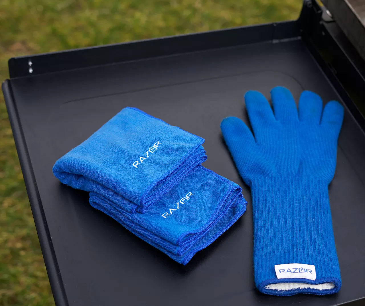Keep your griddle looking new with the Razor griddle cleaning kit. Set includes heat-resistant glove that withstands heat up to 650°F. It also includes a scrubber to clean and restore with replacement pads as well as two microfiber cloths to wipe down after you’re all done. This is a must-have for keeping your griddle in tip-top shape.