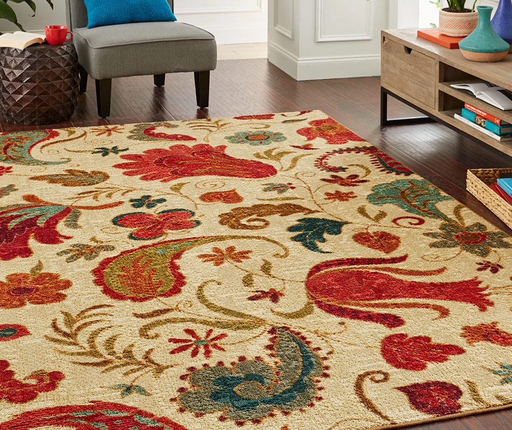 Enjoy a twist on classic florals thanks to a paisley-inspired combination of high-contrast colors. Combining a unique pattern and soft comfort underfoot, this rug offers a perfect finishing touch in a living or work area.