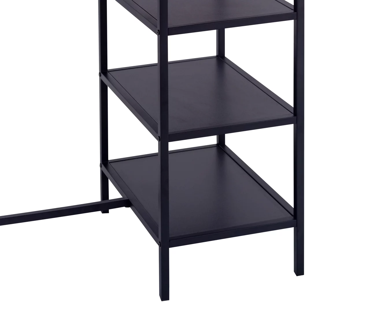 This small and compact dinette is the perfect set for intimate dining in smaller spaces such as apartments, studios or an eat-in kitchen. The pub table adds form and function with a rectangular top as three shelves provide opportunities for storage and display. Each durably constructed piece features a mixed wood and metal construction with walnut finish surfaces and black metal frames.