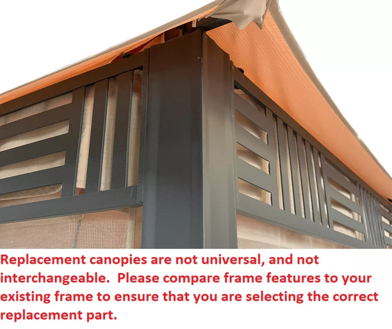 - This replacement canopy top cover will not fit any other gazebo model